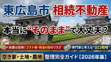 未分類 東広島市で相続した不動産、本当に”そのまま”で大丈夫ですか?空き家・土地・農地の整理完全ガイド【2026年最新版】