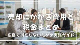 不動産売却 売却にかかる費用と税金まとめ|広島で損をしないための実践ガイド 広島で不動産を売却する前に知っておきたい費用・税金を徹底解説。仲介手数料・譲渡所得税・印紙税から節税のコツまで、損をしない実践ガイド。広島市・東広島市対応。 2025.10.14 不動産売却税金